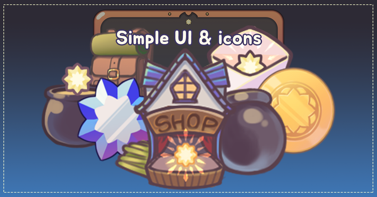 正直、アセットストアのUIは、イマイチなものが多いのですが、その中でも比較的いろんなゲームにも馴染みやすいのがこちらのアセットです。ポップな絵柄なのがいいですね。