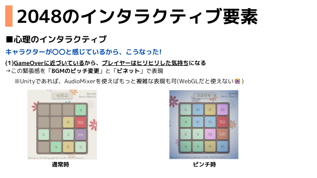また、このインタラクティブな要素をゲームに反映するときに、納得感のある表現である必要がある。