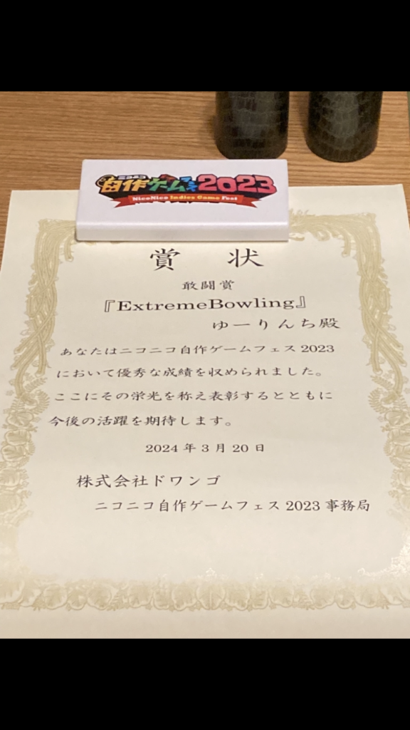 『Extreme Bowling』というボウリングゲームの作品では、ドワンゴ様から表彰をいただきました。